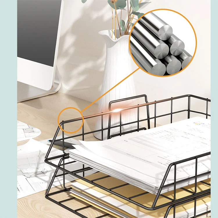 نکات: پایین قفسه ذخیره سازی فایل سینی فلزی صاف شده است، بنابراین روی میز خراش ایجاد نمی کند. با این حال، توصیه می کنیم هنگام قرار دادن آن بر روی یک سطح ارزشمند از پدها یا رومیزی های ضد لغزش استفاده کنید.