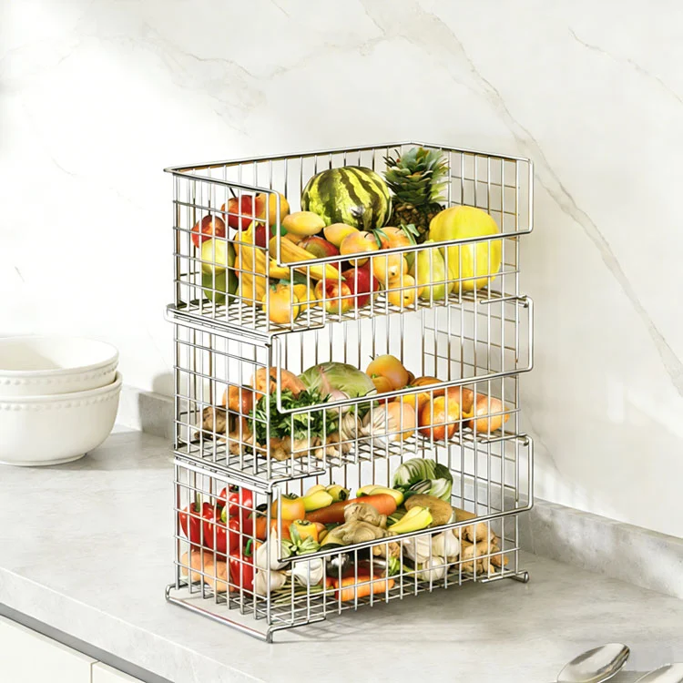 1. ویژگی‌های ساختاری: از طراحی مدولار استفاده می‌کند که امکان انباشتگی رایگان را فراهم می‌کند. از یک سبد می‌توان به‌طور مستقل استفاده کرد، و وقتی چندین سبد روی هم قرار می‌گیرند، می‌توان آن‌ها را دقیقاً توسط گیره‌های پایینی قرار داد تا از لغزش و واژگونی جلوگیری شود. بدنه سبد توری باز همراه با لبه برآمده سبد می‌تواند از غلت خوردن میوه‌ها و سبزیجات جلوگیری کند، در عین حال گردش هوا را حفظ کرده و احتمال فساد و خراب شدن غذا را کاهش می‌دهد.